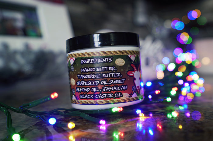 Mango Butter, Tangerine Butter, Grape Seed Oil, Sweet Almond Oil, Jamaican Black Castor Oil